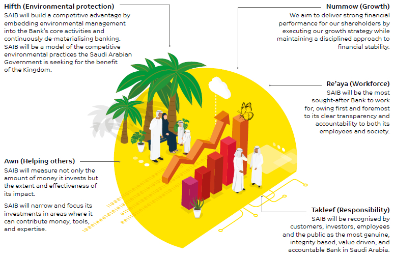 The Bank commenced business in 1977, pursuant to a Royal decree dated June 22, 1976. It concentrated on medium-term financing of industrial projects. In 1983, with the adoption of the SAIB name, the Bank moved into full commercial banking. The ALASALAH Islamic Banking Brand, through which the Bank provides Shariah complaint products and services was launched in 2006. Islamic principles are at the heart of all our operations. Adherence to Shariah principles in product development is assured by our Shariah Committee.