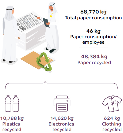 Recycling of paper has shown a remarkable increase from 2017 to 2018 due to increase of staff awareness campaigns and activities to promote recycling.