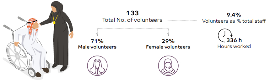Another of SAIBs sustainability pillars is Awn (helping others). It is part of our ethos that we have a social responsibility to help the community grow and prosper and extend a helping hand to the disadvantaged. We also believe that this will enhance our long-term sustainability. Beyond this, our sustainability strategy includes influencing all stakeholders to adopt practices that will benefit the economy, society, and the nation. The Bank’s efforts in the area of social responsibility were recognised by it being awarded the 2018 Arabia CSR Network Award; the award recognises the Bank’s consistent adherence to responsible practices and its leadership in this field. Our social programmes have been concentrated on certain areas such as literacy programmes, agriculture, health and charity programmes. Our staff, including female staff, participate enthusiastically in our social programmes. In 2018, 29% of SAIB volunteers were women. The volunteers contributed to about 20 community activities in 2018. Details of staff volunteering are given below: